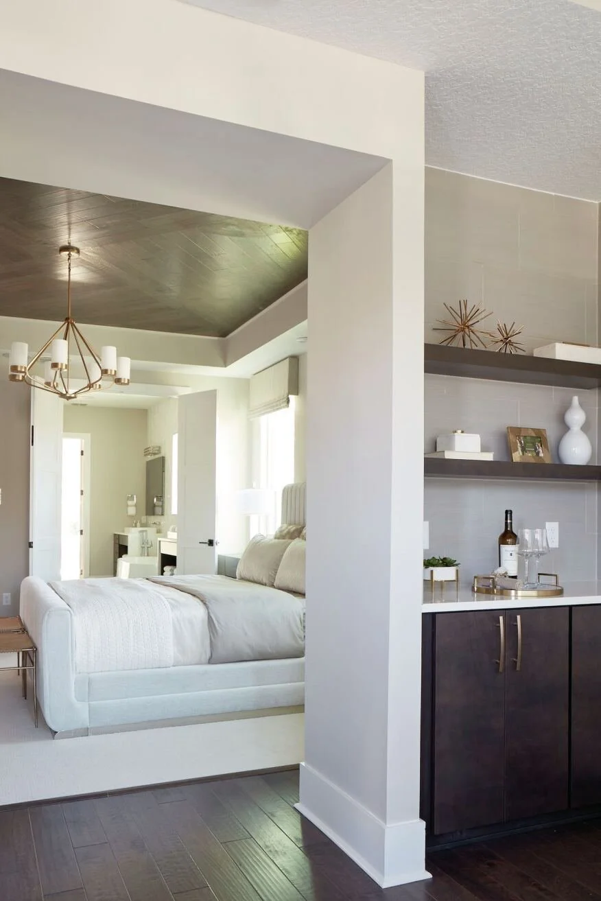 Meritage Homes introduced their Renewable Living Home, designed by yours truly. We wanted to finish the home in soothing linen and taupe hues, with touches of gray. We wanted to emphasize that renewable materials aren’t necessarily all rustic and wood. As you move through the home, the lighting, finishes, and details either mature or grow more modern, depending on the demographic of the family member who will spend the most time in those spaces